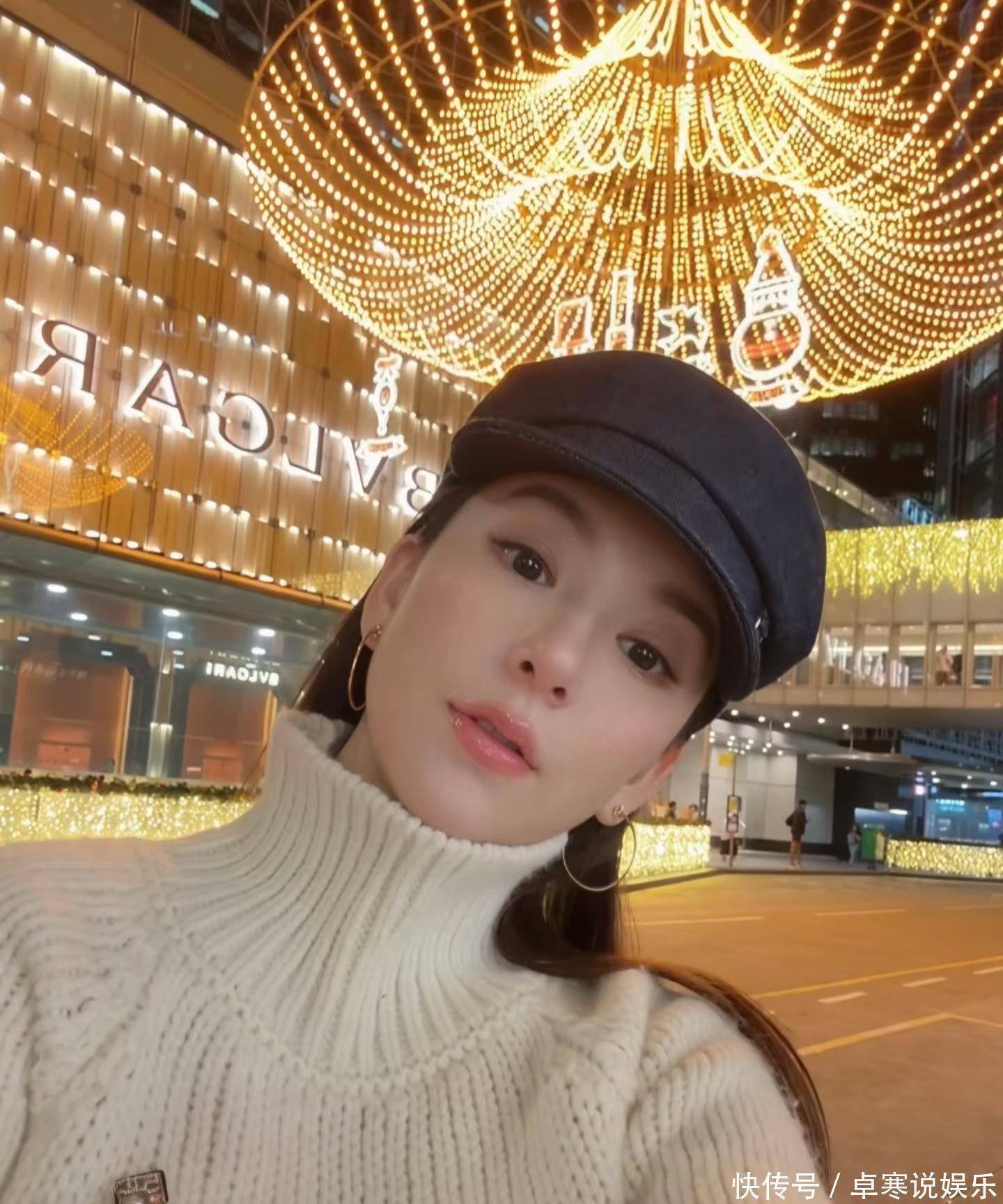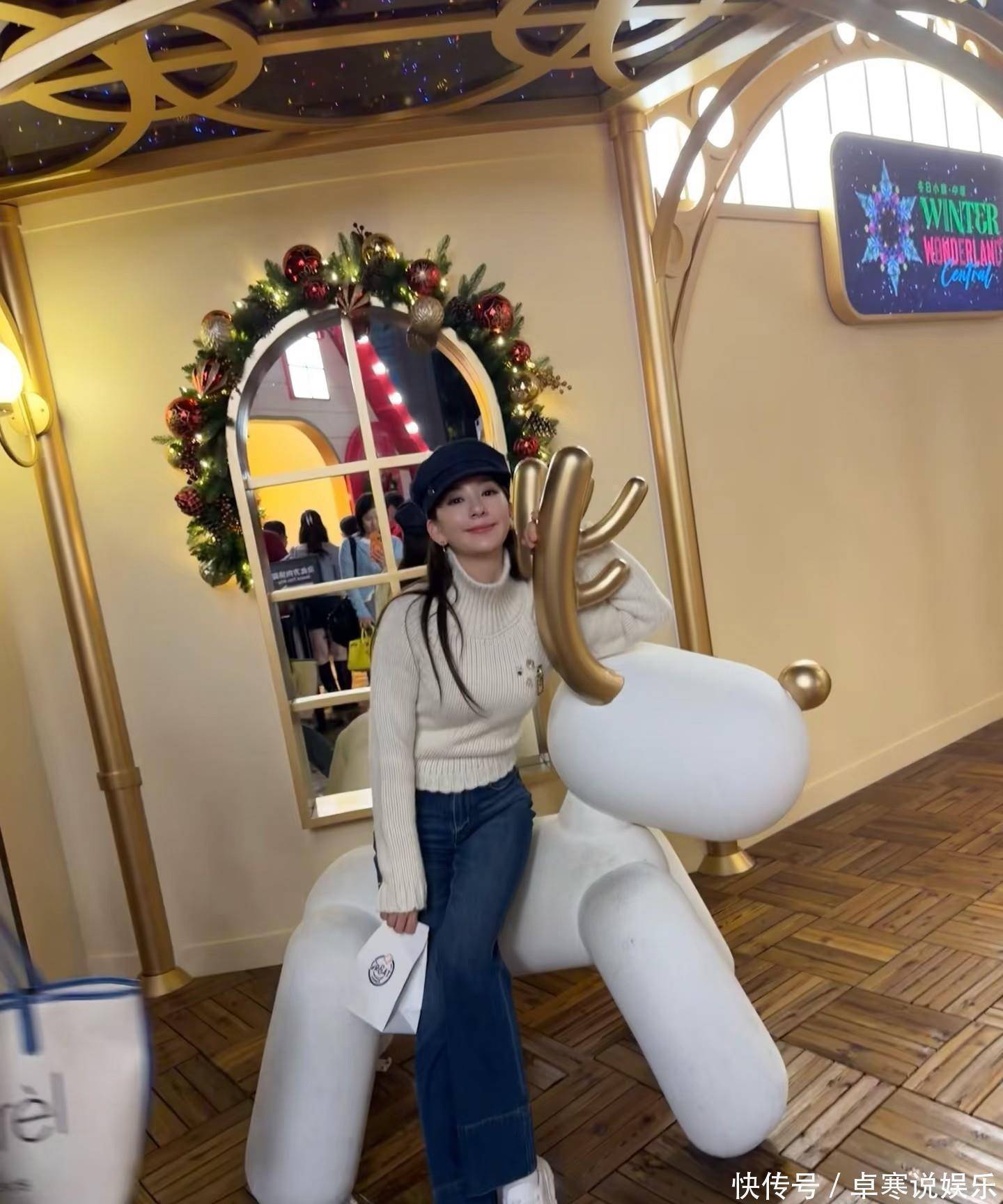 还有几张照片里的画面更是让人挪不开眼,她靠在装饰满红金彩球的巨型圣诞树旁,一只手轻搭在复古金色路灯杆上,单腿微抬的姿势又甜又飒,牛仔裤包裹下的腿又细又直,完全看不出是生过三个孩子的妈妈;