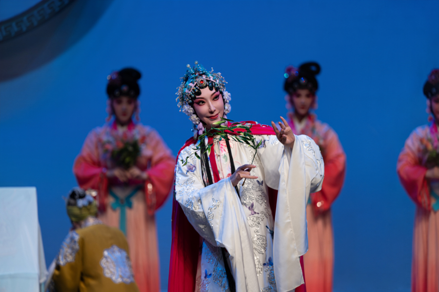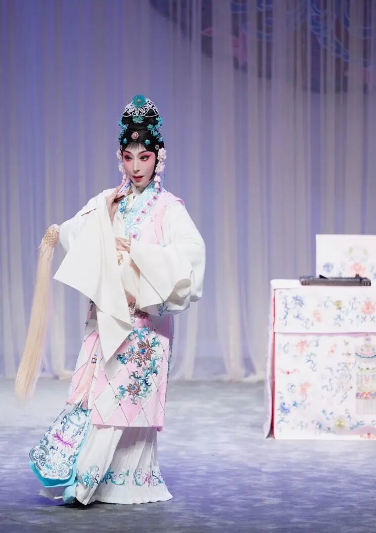 《玉簪记》讲述书生潘必正科举落第后寄居女贞观,与道姑陈妙常因琴曲相知互生情愫,最终冲破礼教束缚的爱情故事。韩宜珈在昆曲表演艺术家张静娴指导下,融合京剧青衣的沉稳与昆曲的雅致,以悠扬婉转的声腔、自然优雅的身段、巧妙灵动的神情,精准演绎陈妙常的羞涩、勇敢与深情。
