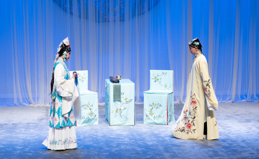 《疗妒羹·题曲》是一出极具传奇色彩的“冷戏”。清末,苏州全福班名旦钱宝卿以此戏蜚声曲坛。1929年,姚传芗向病中的钱宝卿抢学了这出绝响,并将其丰富完善。1982年,姚传芗亲授王奉梅,如今王奉梅又传给韩宜珈。此折为五旦独角戏,讲述才女乔小青被纳为妾后遭妒,幽居西湖孤山,读《牡丹亭》自况身世,题诗寄怀。韩宜珈将用细腻的表演,展现“原来姹紫嫣红开遍,似这般都付与断井颓垣”共鸣。
