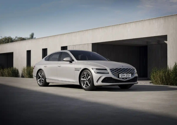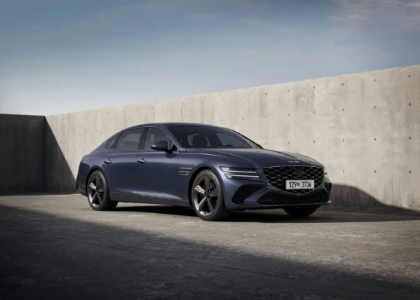 外观方面,2026款G80新增Vatna Gray(灰色)和Ceres Blue(蓝色)两种车身颜色,进一步丰富个性化选择。同时,新车配备全新设计的19英寸轮圈,提升视觉精致感。车尾部分取消了原有的品牌图形Logo,仅保留“GENESIS”英文铭牌,使尾部造型更显简洁、统一。这一调整强化了整车的现代豪华气质,也呼应了品牌近年来强调的极简美学理念。