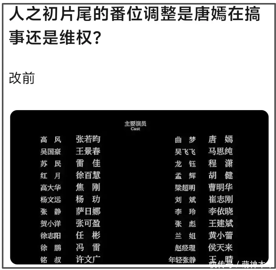 不过还是要强调一下,外人无法确切了解番位调整是剧方行为还是明星团队授意,就随口吃瓜吧。